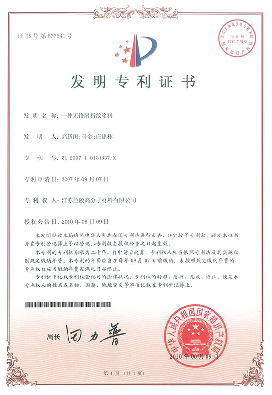 一種無鉻耐指紋涂料 |